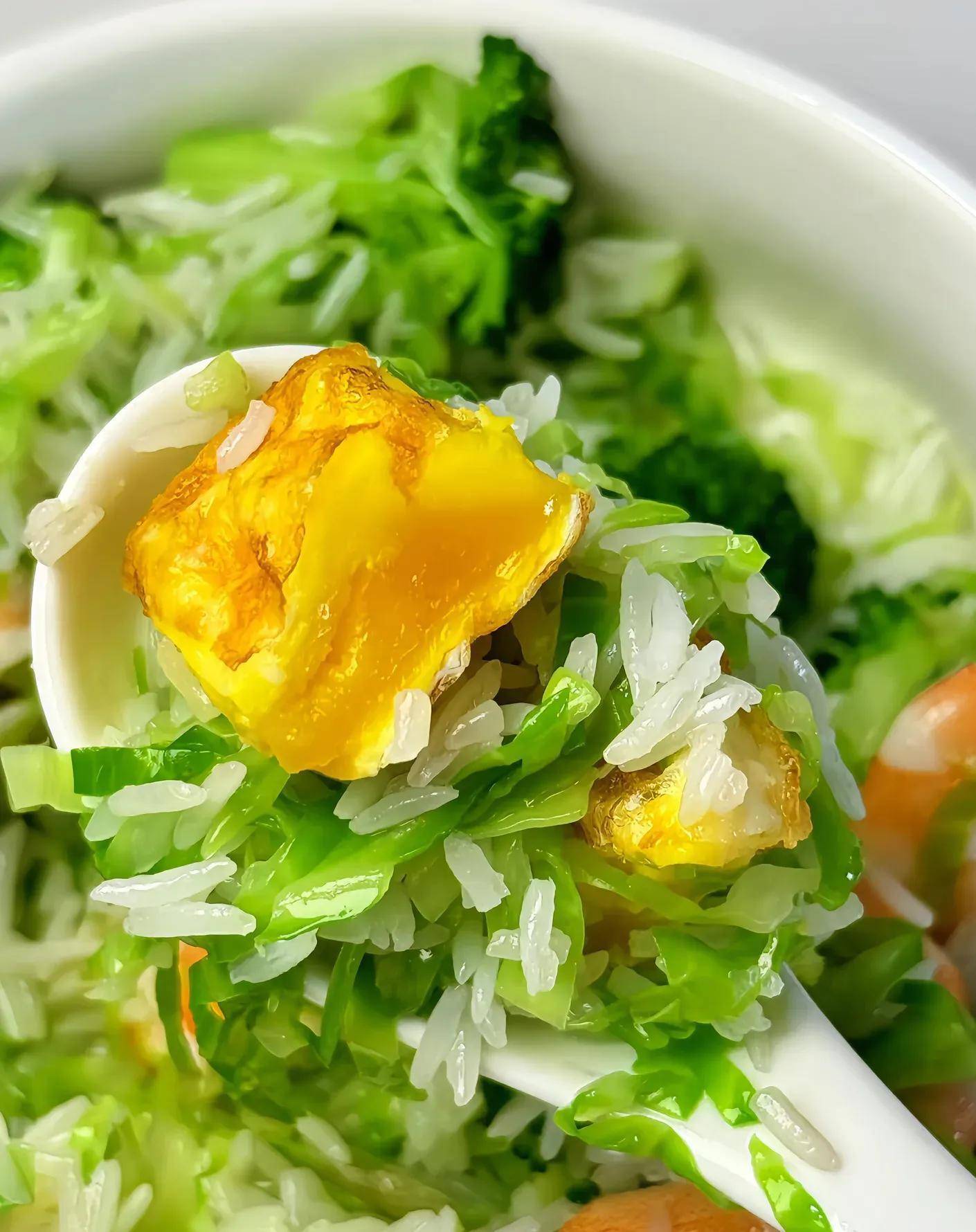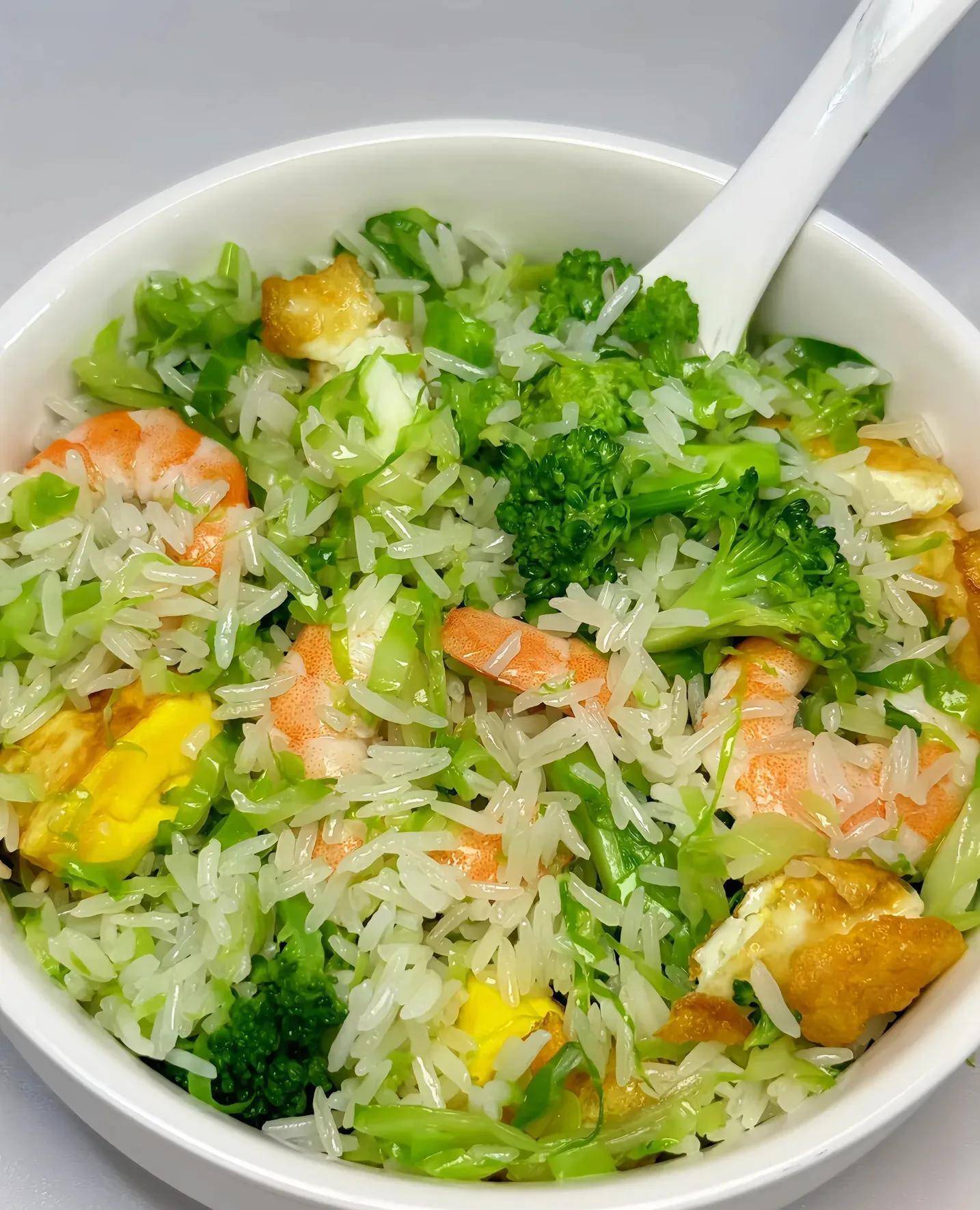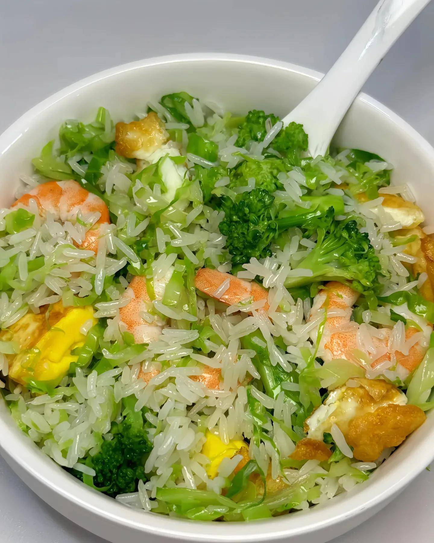 压力山大时,来碗西兰花包菜虾仁饭,瞬息调整!绿油油的西兰花脆生生,包菜丝甜丝丝,虾仁Q弹鲜活,米饭吸饱汤汁,一口下去透露不腻,肠胃零背负。