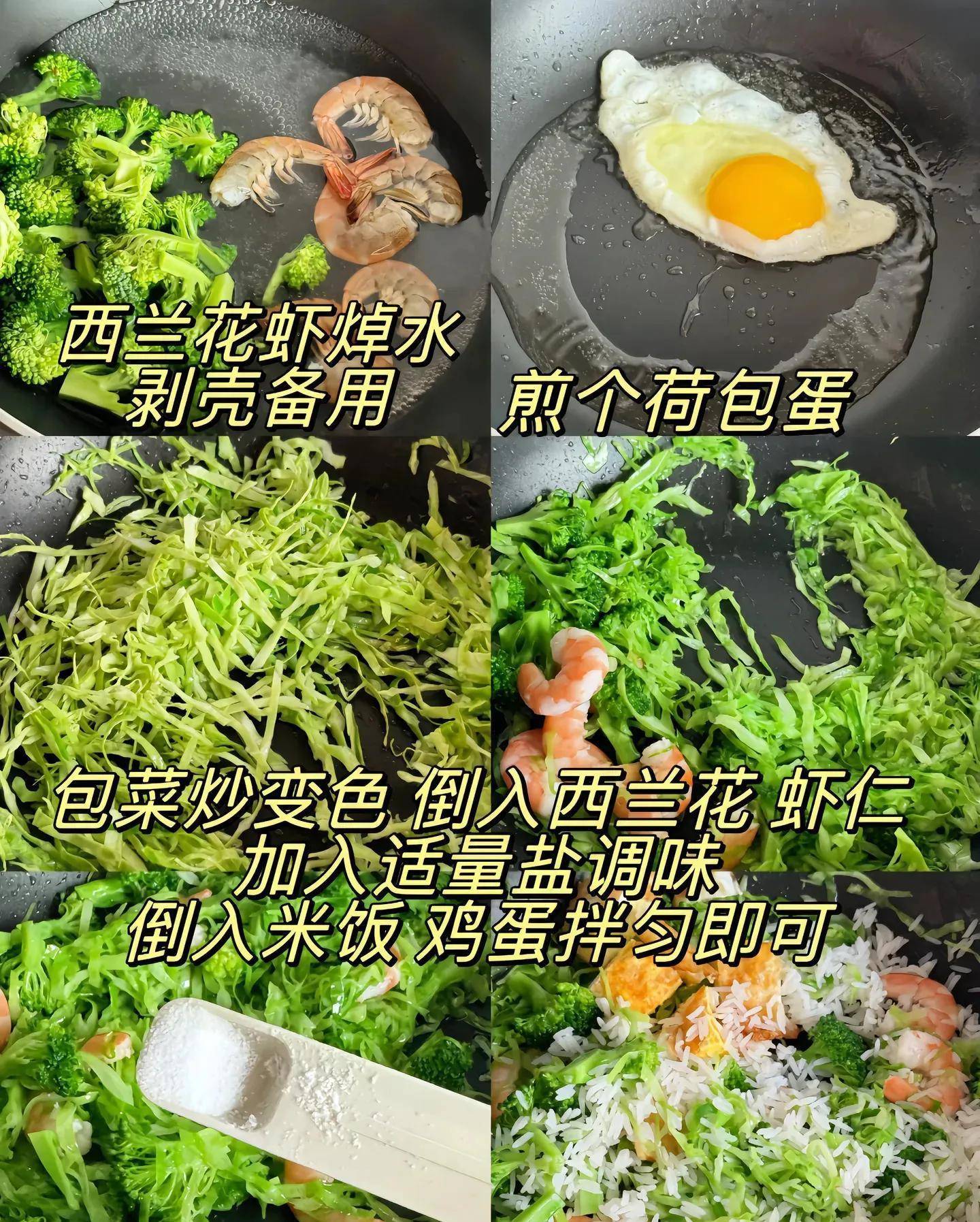 二、西兰花包菜虾仁饭:透露低卡,降火安神就靠它