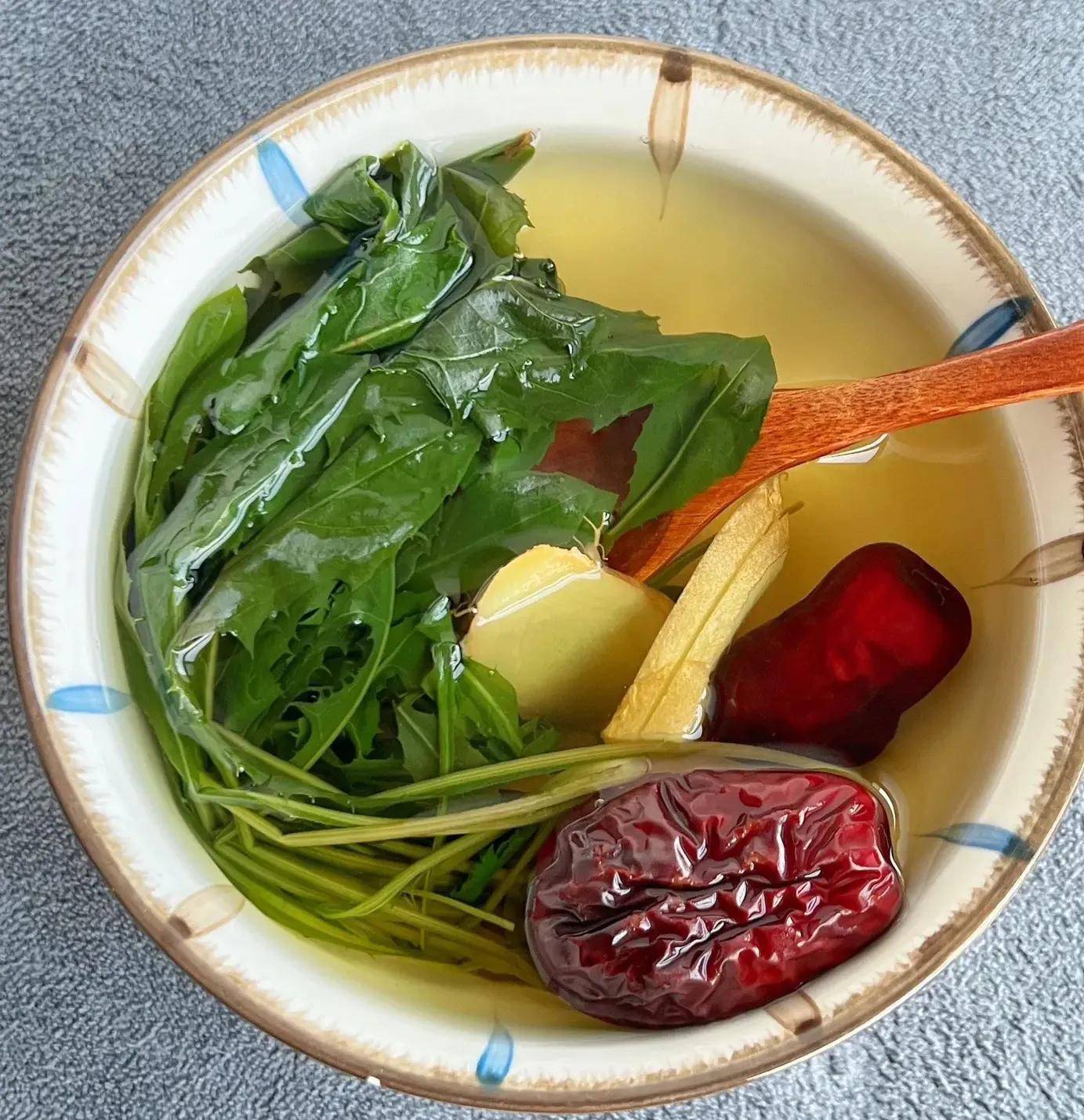 三、蒲公英生姜红枣水:寒凉体质也能喝,清肝排毒每周必备