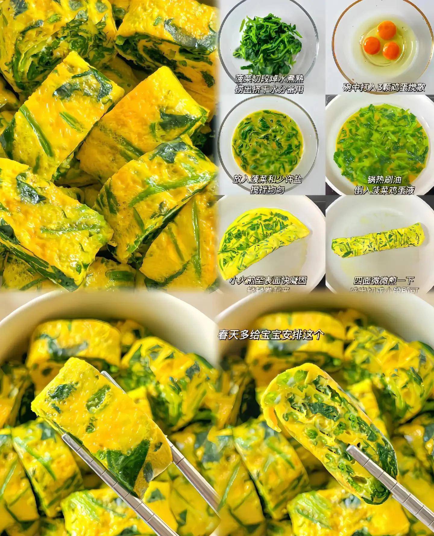 一、菠菜鸡蛋卷:外酥里嫩的至人搭配,清肝又补铁