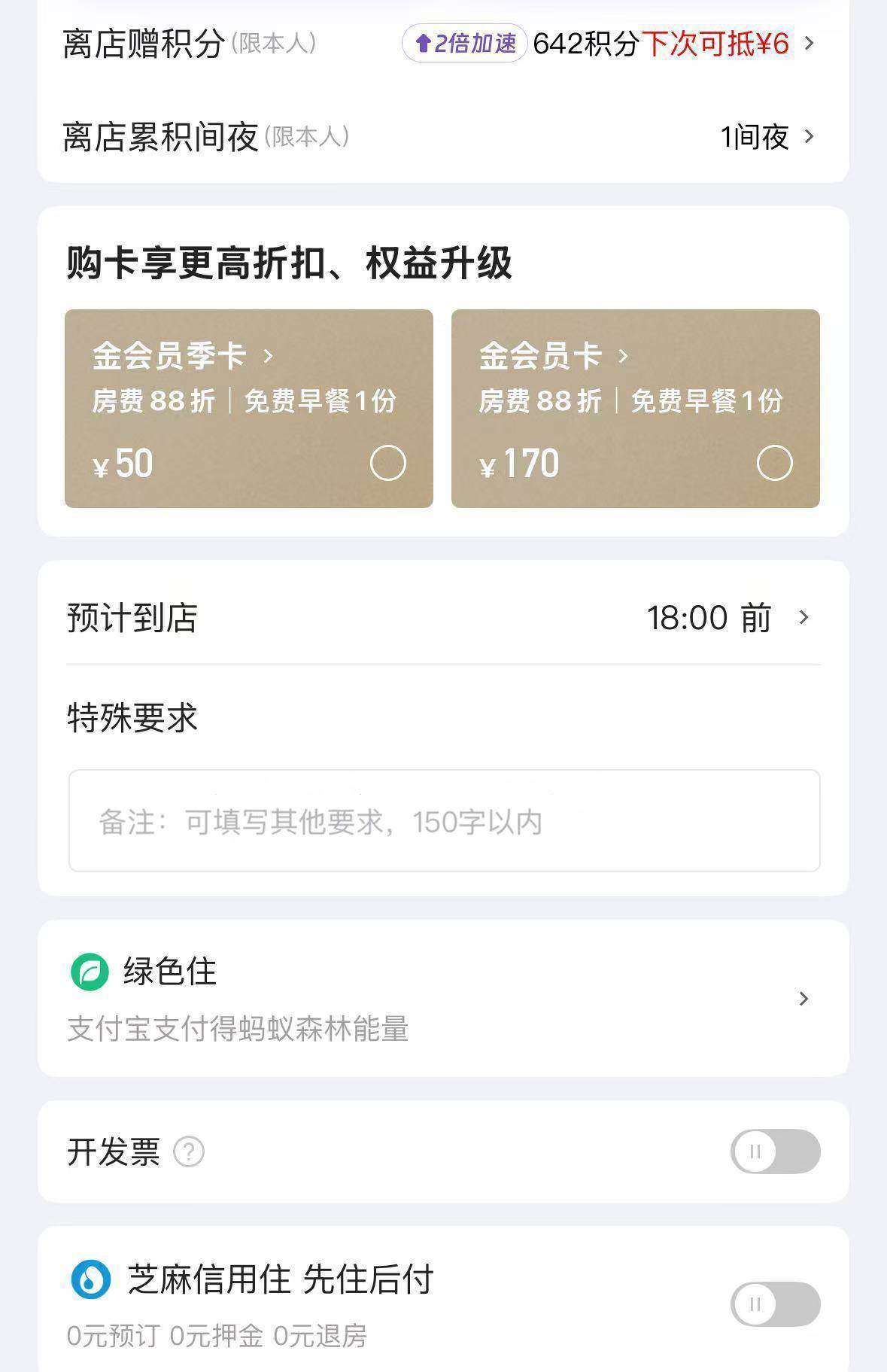 预订过晚房间时,页面未出现“无痕预订”选项