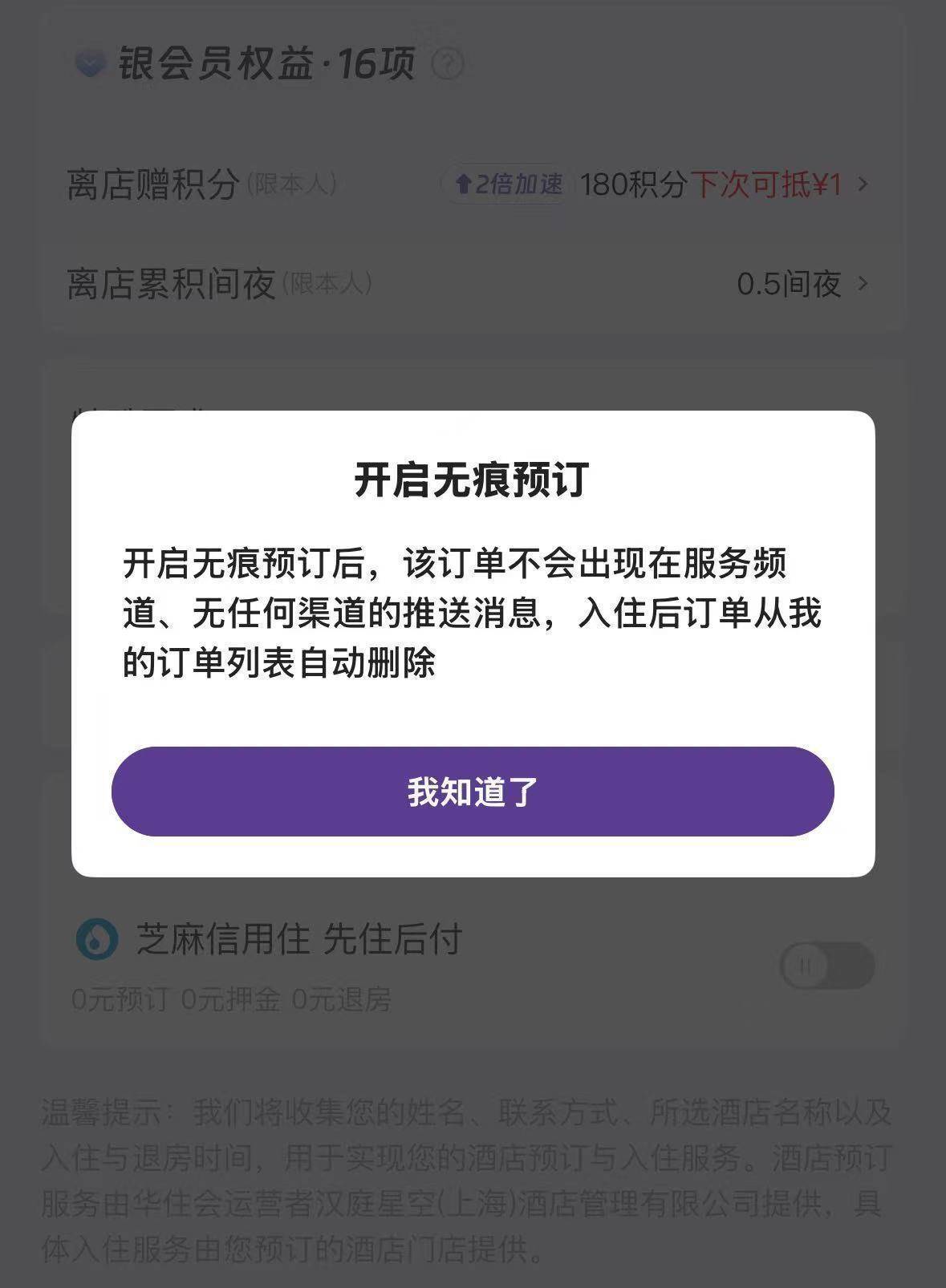 华住会app中“无痕预订”的笃定指示